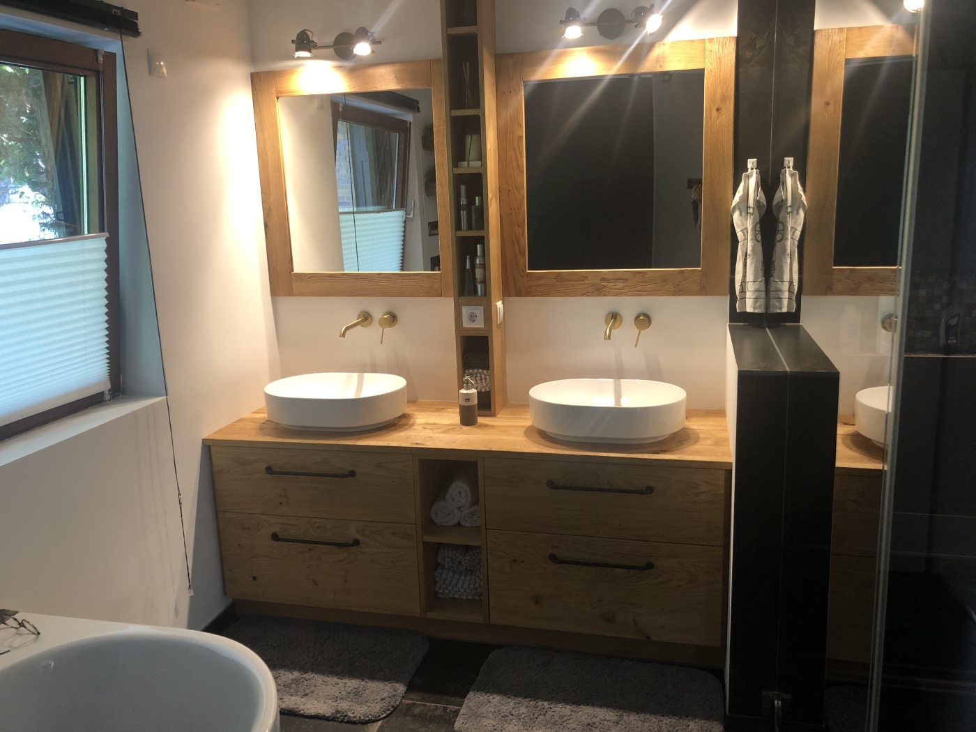 Badezimmermöbel individuell gefertigt, auf Wunsch mit Beleuchtung, Spiegel und Wäscheschacht.